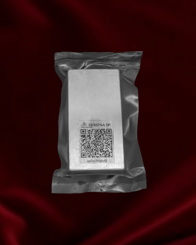 Los lingotes de plata fabricados por la refinería española SEMPSA (Sociedad Española de Metales Preciosos SA) se entregan en un blister con tarjeta que certifica su origen. Este envoltorio permite abrirlo sin romperlo, con lo que es posible analizar el lingote más fácilmente. Debe recordarse que no todos los sistemas de análisis de pureza de la plata permiten hacerlo con blister. Como ocurre en otras piezas, contienen igualmente toda la información relevante grabada en el propio lingote.