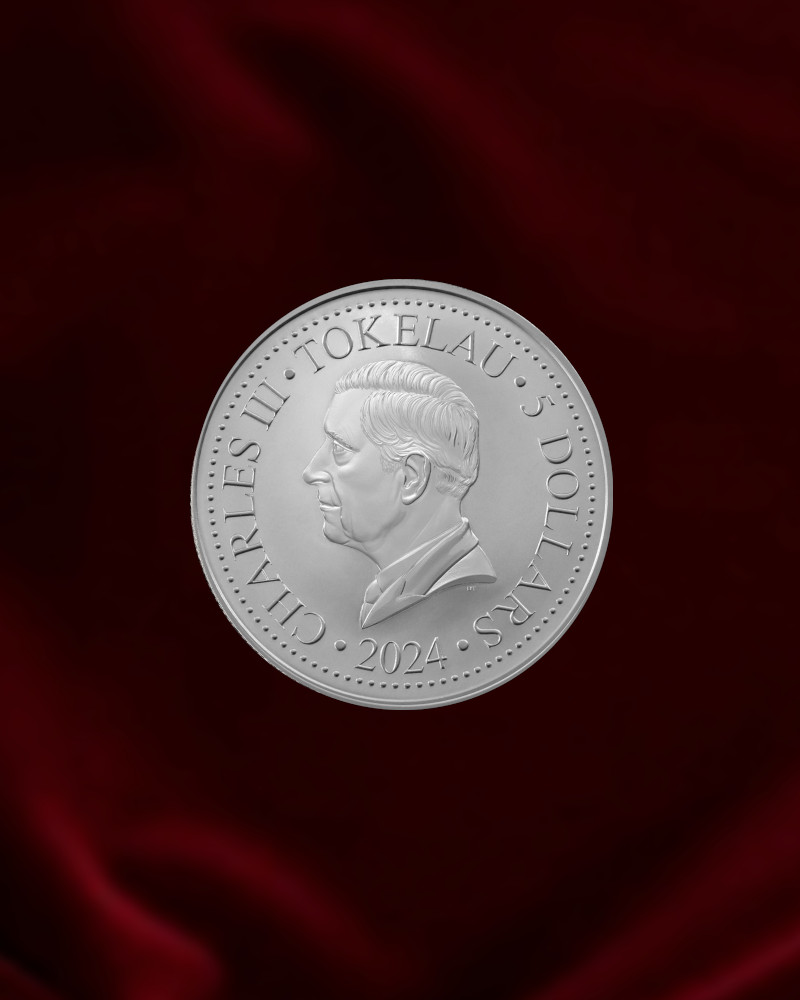 La moneda de lingotes de plata Mustang 2024 encarna el espíritu del oeste americano. Está acuñado en 31,1 g (1 oz) de plata fina 999, con un diámetro de 38,60 mm. La moneda está acuñada con una calidad de brillo mate similar a la de una prueba, con un relieve profundo y un alto nivel de detalle. El motivo representa la personificación del Viejo Oeste de la forma en que la gente de todo el mundo lo recuerda: el mustang. Estas majestuosas criaturas son descendientes de caballos de raza pura traídos al Nuevo Mundo por los conquistadores españoles alrededor del siglo XV. Los animales que lograron escapar a lo largo de los años formaron manadas salvajes. De esa manera, las especies que se habían extinguido en este continente hace unos 8000 a 10,000 años volvieron a formar parte de la vida silvestre local e incluso en un símbolo de la historia de la región que recuerda como el Salvaje Oeste. El Mustang se representa galopando a través de las amplias extensiones de las Grandes Llanuras. El movimiento capturado en la ilustración enfatiza la fuerza y la belleza de esta criatura, y su melena, arrastrada hacia atrás por una poderosa ráfaga, insinúa tanto su velocidad como la libertad que ha llegado a representar. El anverso representa la efigie del rey Carlos III, el valor nominal de la moneda – 5 NZD, el país – Tokelau y el año de acuñación.